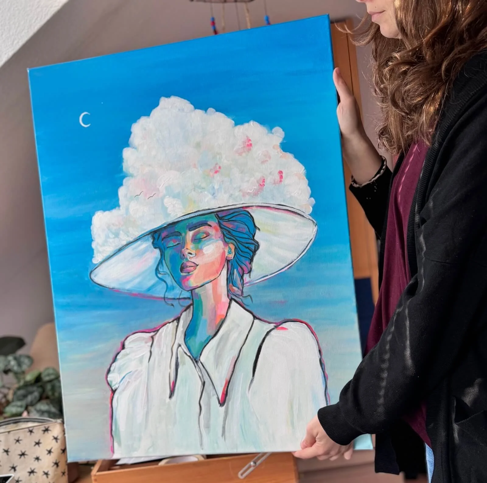 Der Wolkenhut schwebt über ihr, eine Verbindung zwischen Erde und Himmel, zwischen dem, was ist und dem, was sein könnte.☁️